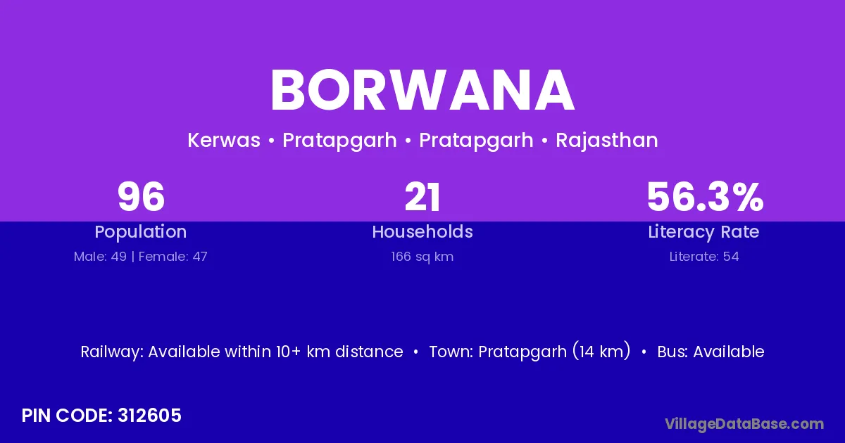 Jaora (25 km) is the nearest town to Borwana village for major economic activities and is located approximately 25 km away.