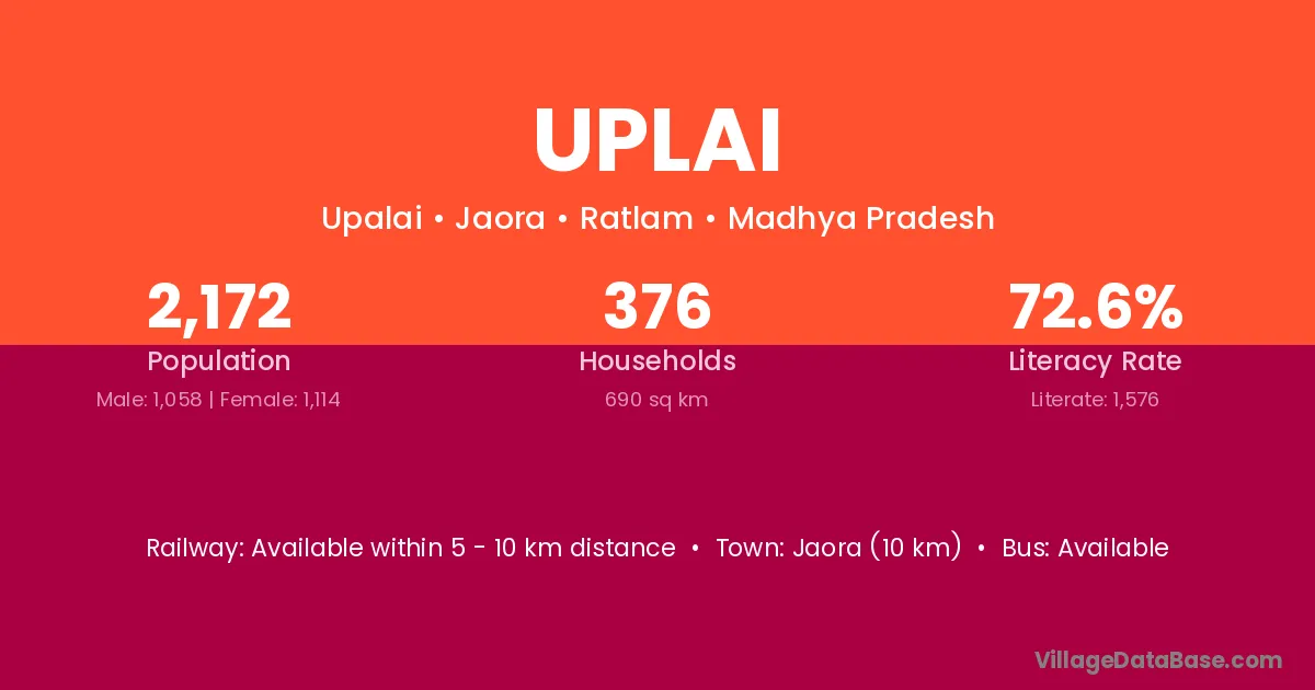 Jaora (10 km) is the nearest town to Uplai village for major economic activities and is located approximately 10 km away.