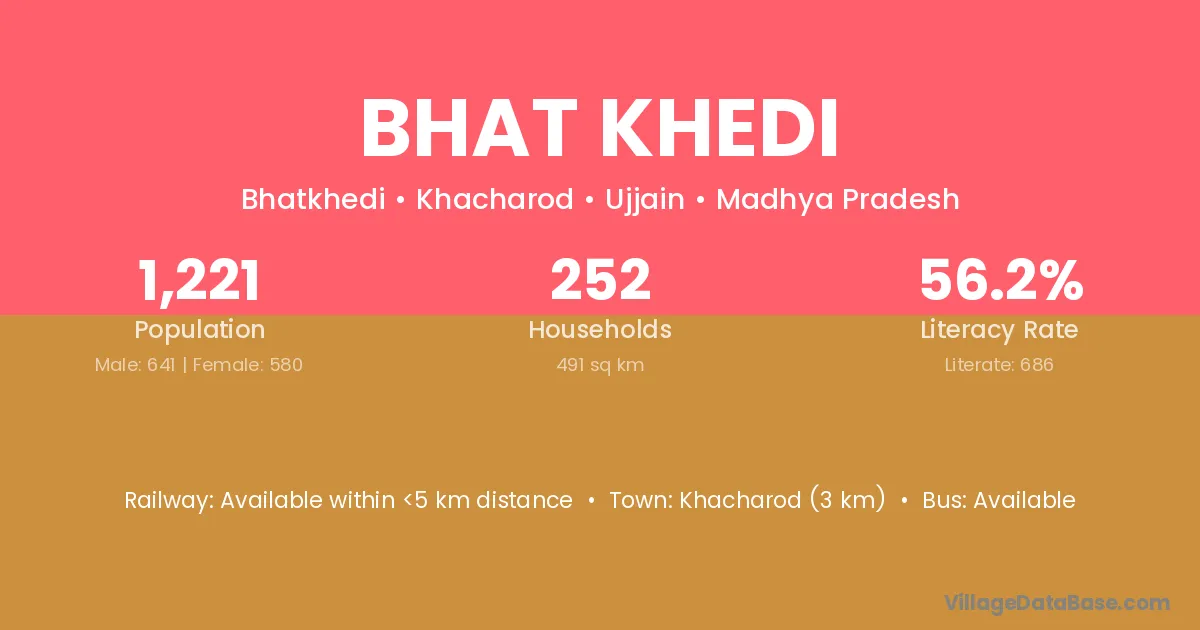 Jaora (13 km) is the nearest town to Bhat Khedi village for major economic activities and is located approximately 13 km away.