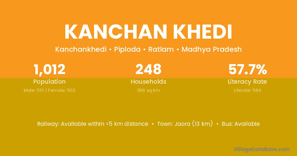Kanchan Khedi village has a total population of 1,012 people, of which 510 are males and 502 are females.