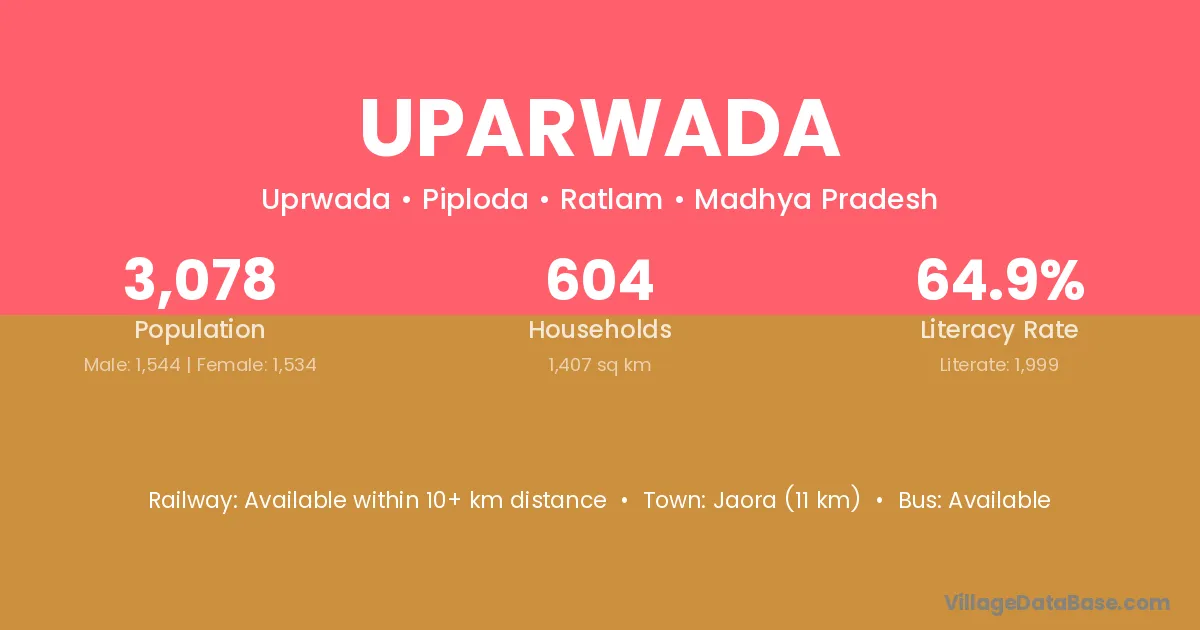 Jaora (11 km) is the nearest town to Uparwada village for major economic activities and is located approximately 11 km away.