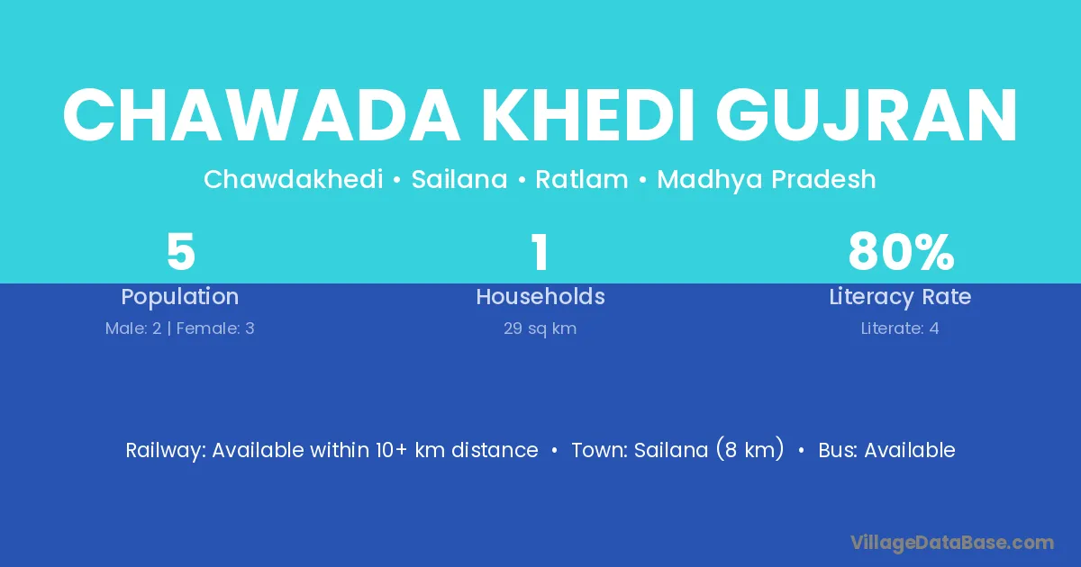 There are approximately 1 households in Chawada Khedi Gujran village.