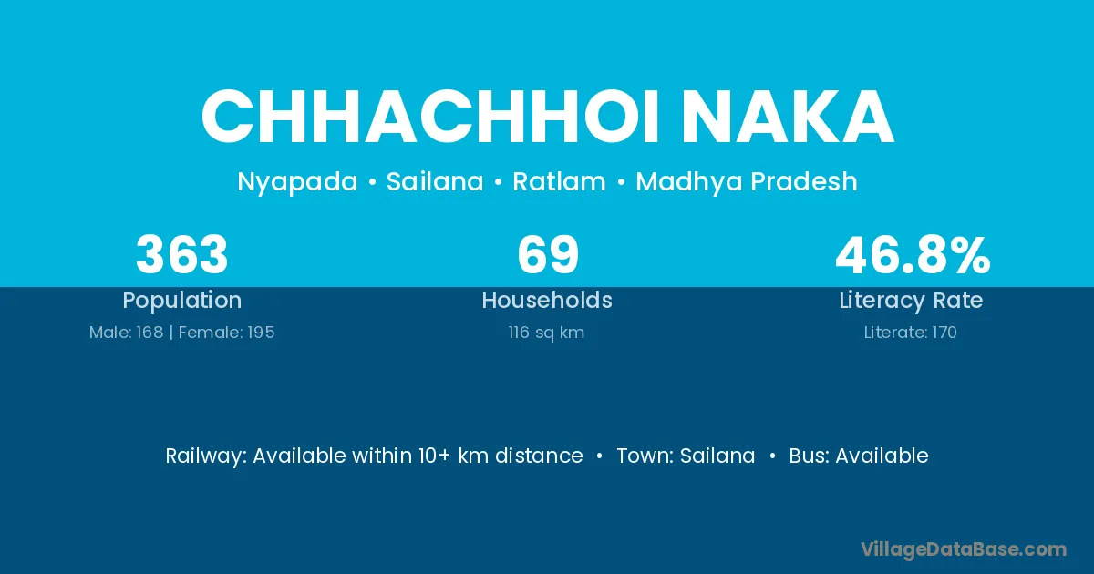 Chhachhoi Naka village has a total population of 363 people, of which 168 are males and 195 are females.