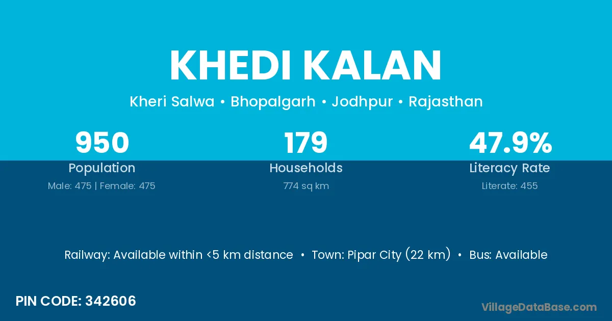 Ratlam (16 km) is the nearest town to Khedi Kalan village for major economic activities and is located approximately 16 km away.