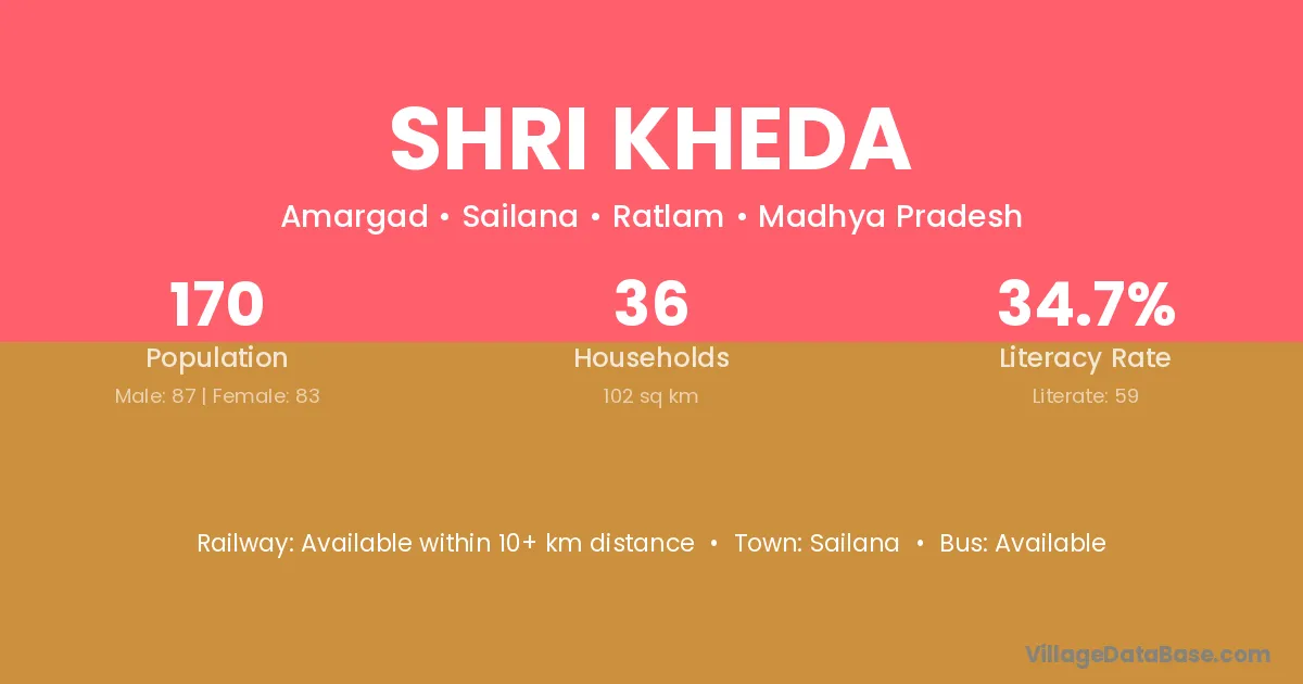 Shri Kheda village has a total population of 170 people, of which 87 are males and 83 are females.