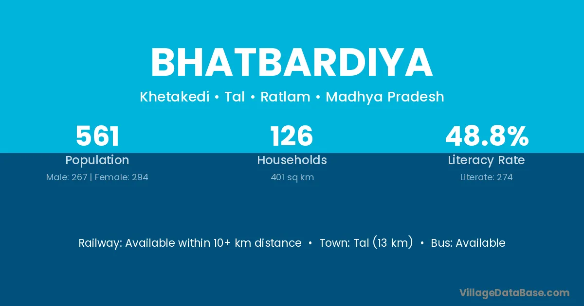 Bhatbardiya village is located in the Tal Tehsil of the Ratlam district in Madhya Pradesh .