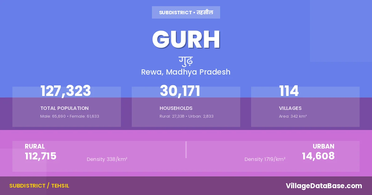 Gurh is a town and Tehsil in the Rewa district of the Madhya Pradesh. In India, a Tehsil is a subdivision of a district responsible for the administration and revenue collection of a specific area within the district. Tehsils play a crucial role in the local governance structure, contributing significantly to the development and administration of their communities.