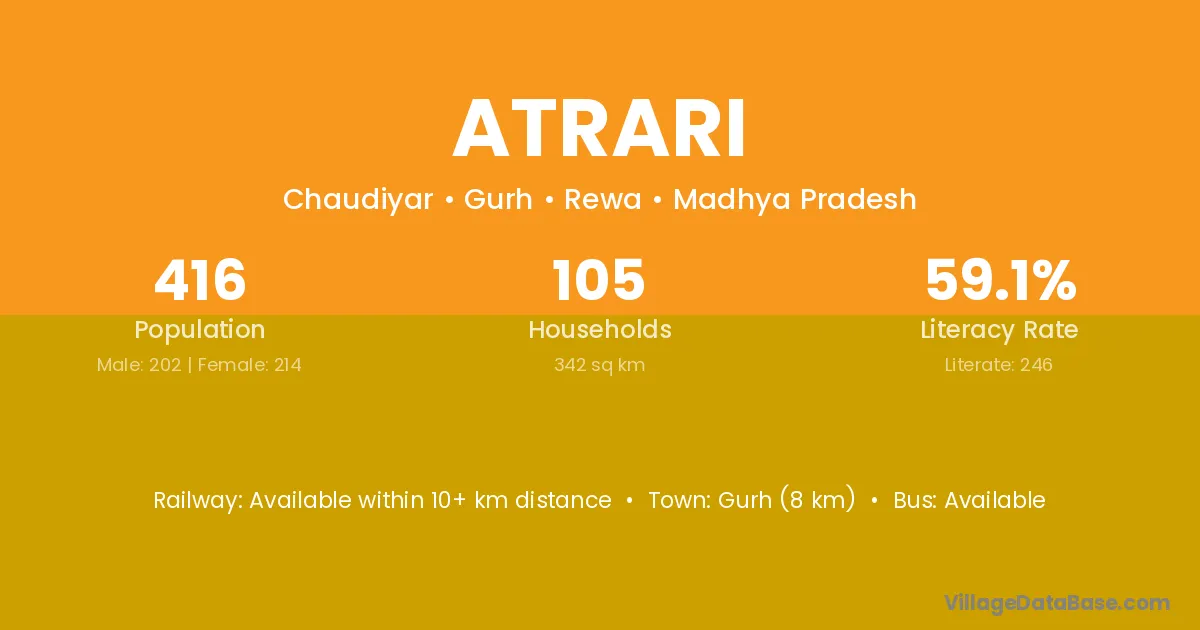 Gurh (8 km) is the nearest town to Atrari village for major economic activities and is located approximately 8 km away.