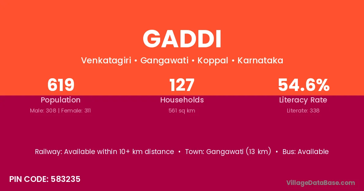 The literacy rate of Gaddi village is 40.05%. Male literacy stands at 46.70% and female literacy at 32.86%.