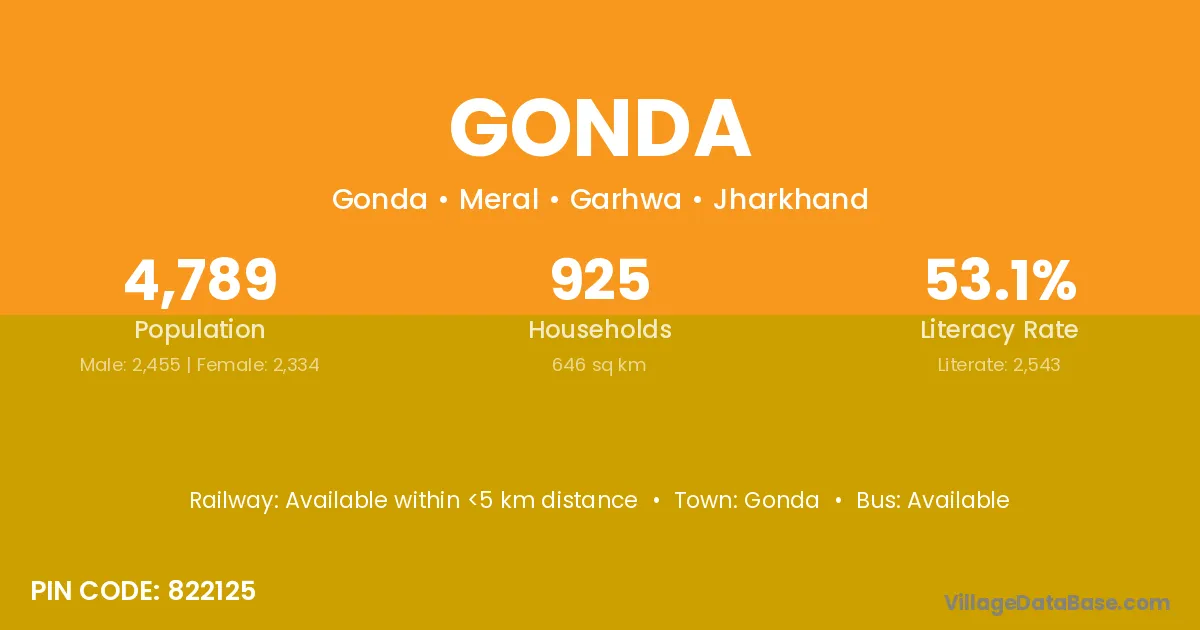 Gurh (22 km) is the nearest town to Gonda village for major economic activities and is located approximately 22 km away.
