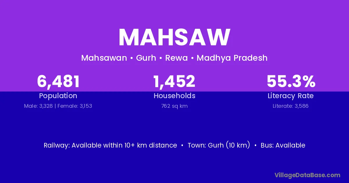 Gurh (10 km) is the nearest town to Mahsaw village for major economic activities and is located approximately 10 km away.