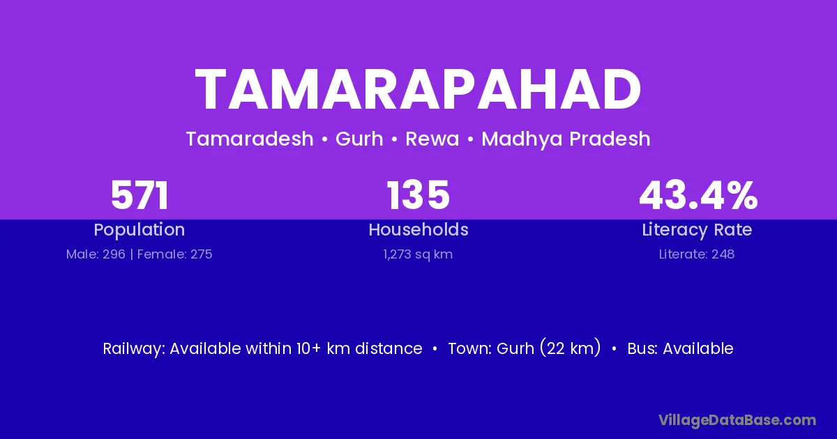 Gurh (22 km) is the nearest town to Tamarapahad village for major economic activities and is located approximately 22 km away.