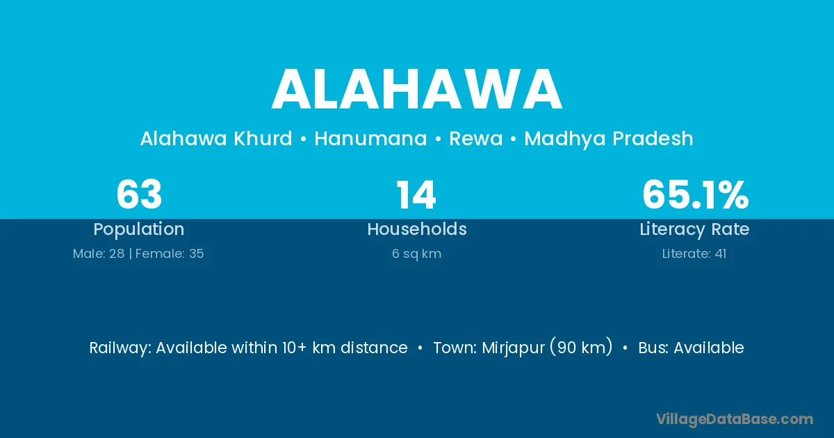 Mirjapur (90 km) is the nearest town to Alahawa village for major economic activities and is located approximately 90 km away.