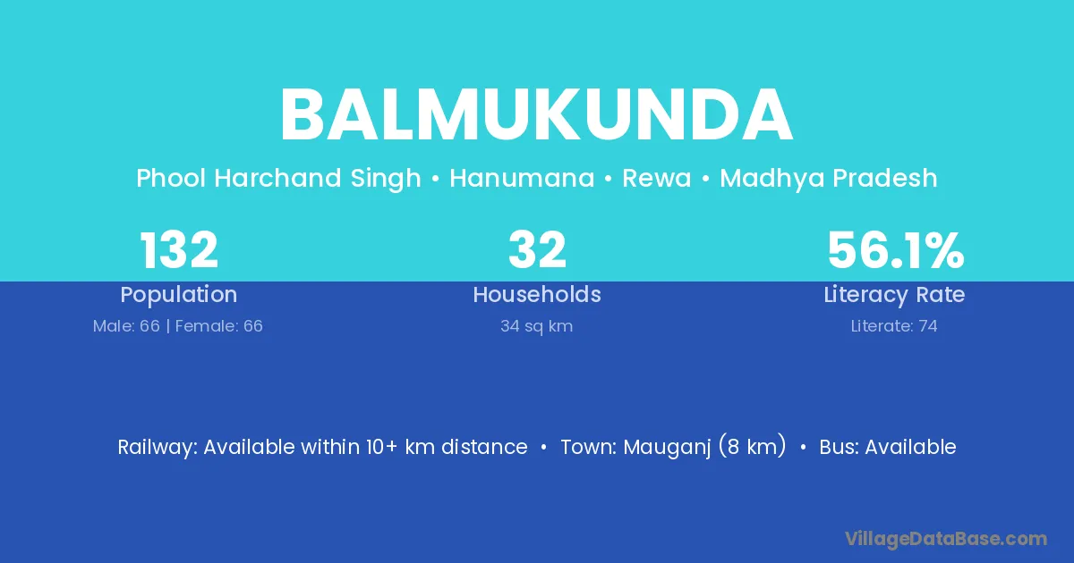 Mauganj (8 km) is the nearest town to Balmukunda village for major economic activities and is located approximately 8 km away.