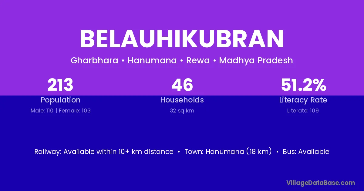 Hanumana (18 km) is the nearest town to Belauhikubran village for major economic activities and is located approximately 18 km away.