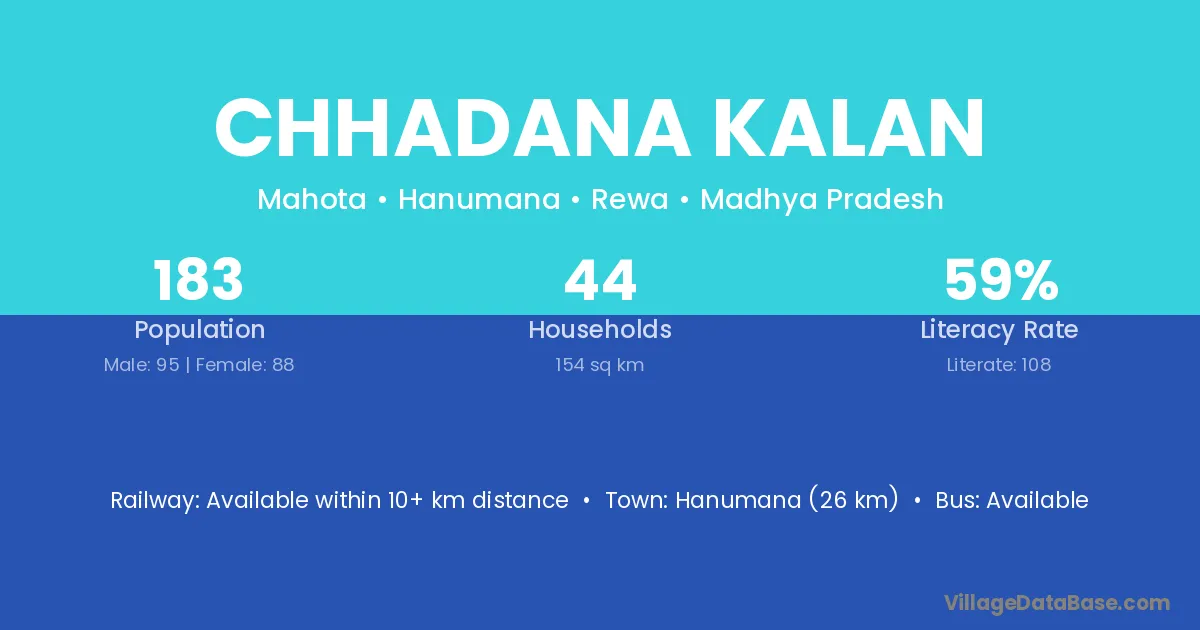 Hanumana (26 km) is the nearest town to Chhadana Kalan village for major economic activities and is located approximately 26 km away.