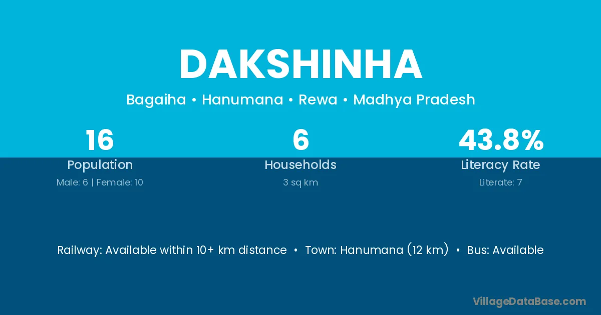 Hanumana (12 km) is the nearest town to Dakshinha village for major economic activities and is located approximately 12 km away.