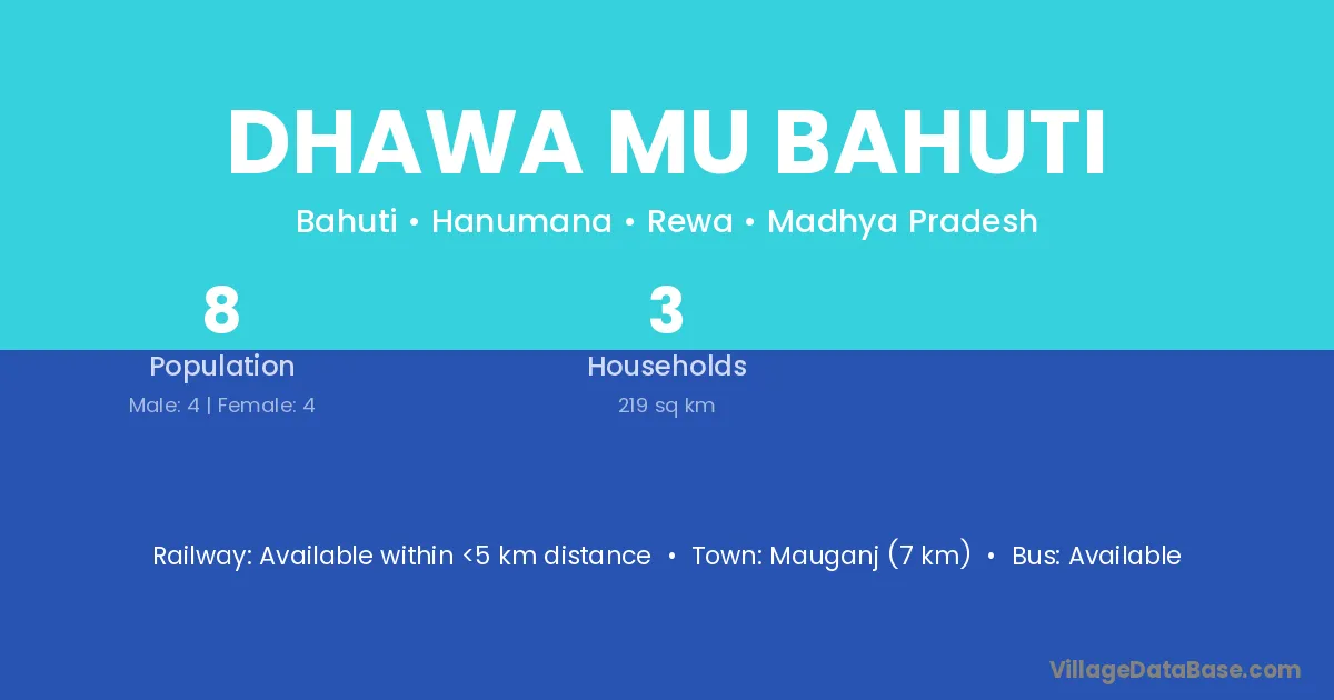 Mauganj (7 km) is the nearest town to Dhawa Mu Bahuti village for major economic activities and is located approximately 7 km away.