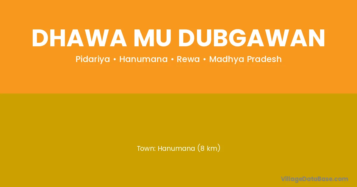 Hanumana (8 km) is the nearest town to Dhawa Mu Dubgawan village for major economic activities and is located approximately 8 km away.
