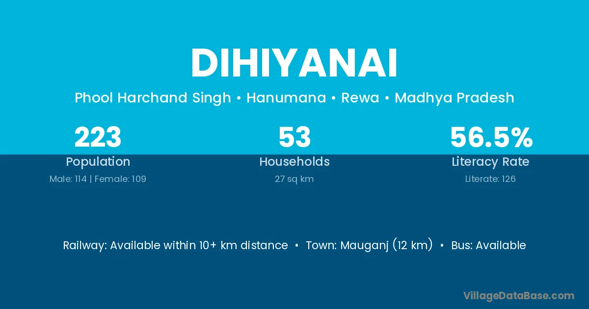 Mauganj (12 km) is the nearest town to Dihiyanai village for major economic activities and is located approximately 12 km away.