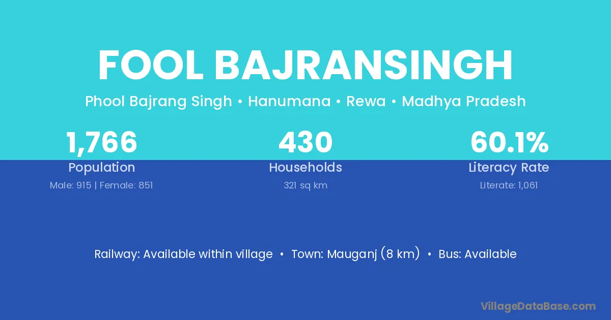 Mauganj (8 km) is the nearest town to Fool Bajransingh village for major economic activities and is located approximately 8 km away.