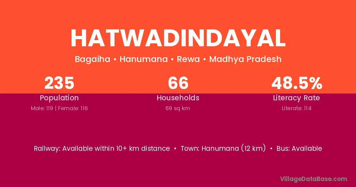 Hatwadindayal village has a total population of 235 people, of which 119 are males and 116 are females.