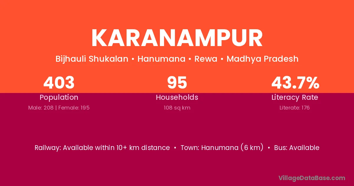 Hanumana (6 km) is the nearest town to Karanampur village for major economic activities and is located approximately 6 km away.