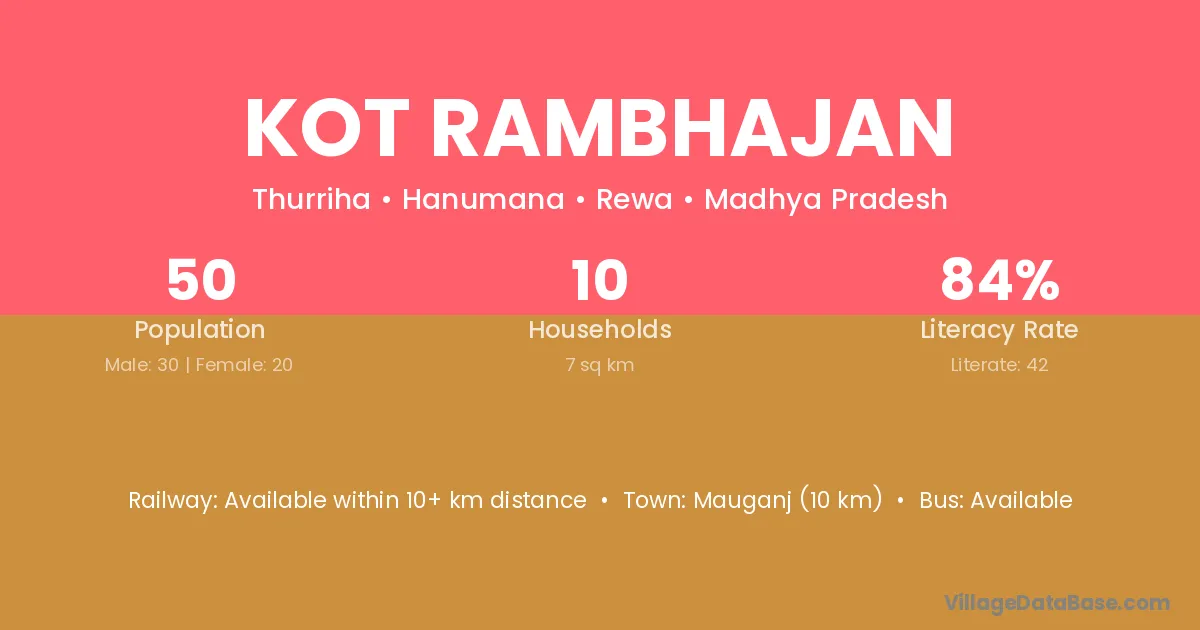 Mauganj (10 km) is the nearest town to Kot Rambhajan village for major economic activities and is located approximately 10 km away.