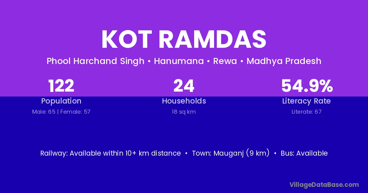 Mauganj (9 km) is the nearest town to Kot Ramdas village for major economic activities and is located approximately 9 km away.