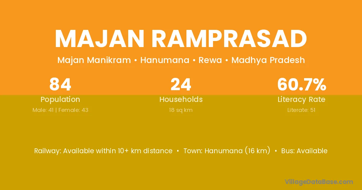 Hanumana (16 km) is the nearest town to Majan Ramprasad village for major economic activities and is located approximately 16 km away.