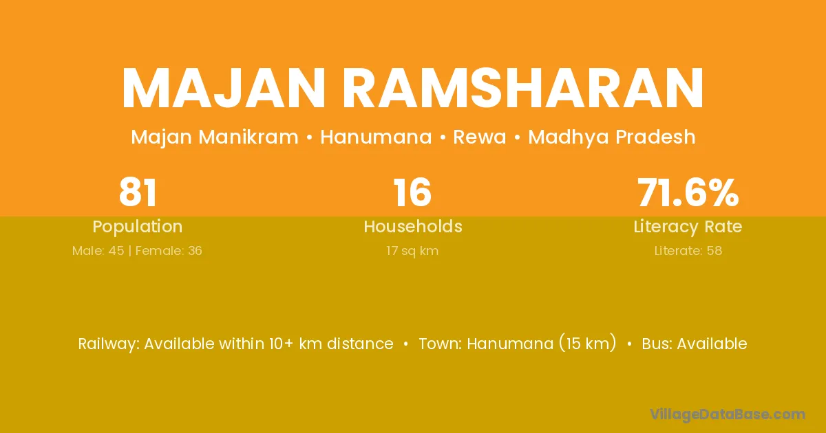 Hanumana (15 km) is the nearest town to Majan Ramsharan village for major economic activities and is located approximately 15 km away.