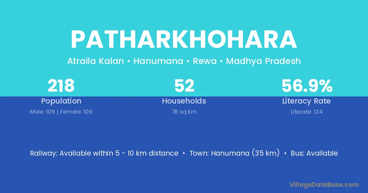 Hanumana (35 km) is the nearest town to Patharkhohara village for major economic activities and is located approximately 35 km away.