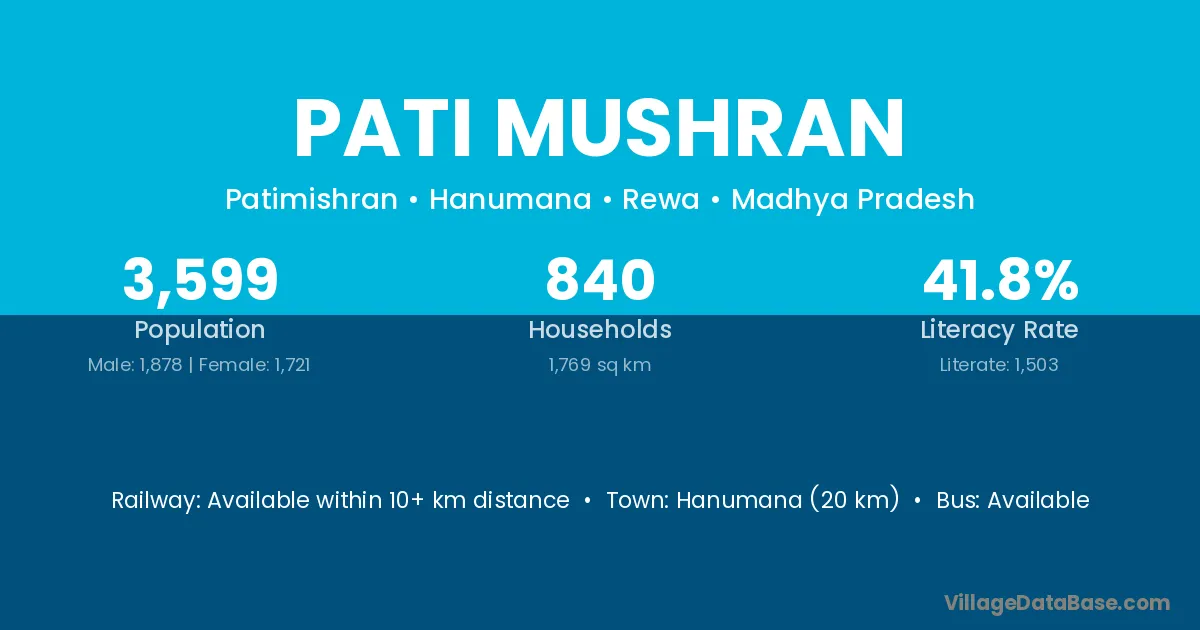 Hanumana (20 km) is the nearest town to Pati Mushran village for major economic activities and is located approximately 20 km away.