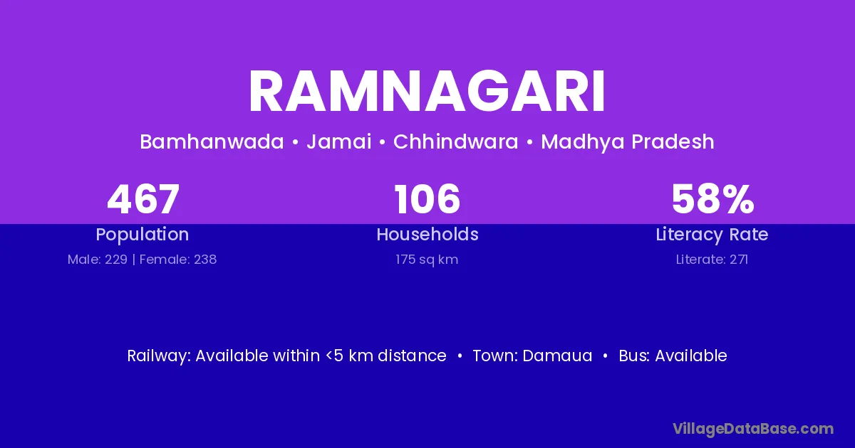 Hanumana (24 km) is the nearest town to Ramnagari village for major economic activities and is located approximately 24 km away.