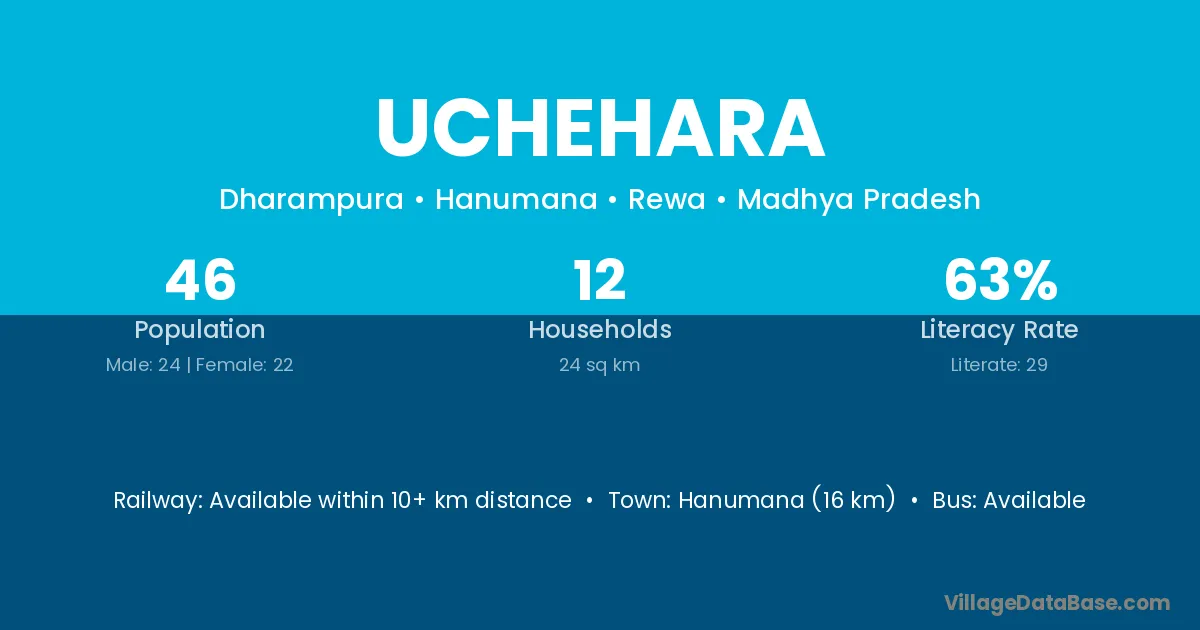 Hanumana (16 km) is the nearest town to Uchehara village for major economic activities and is located approximately 16 km away.