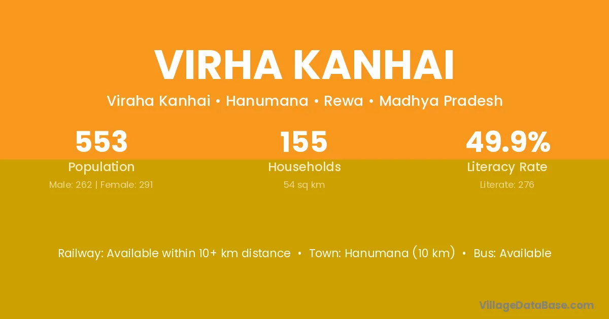 Virha Kanhai village has a total population of 553 people, of which 262 are males and 291 are females.
