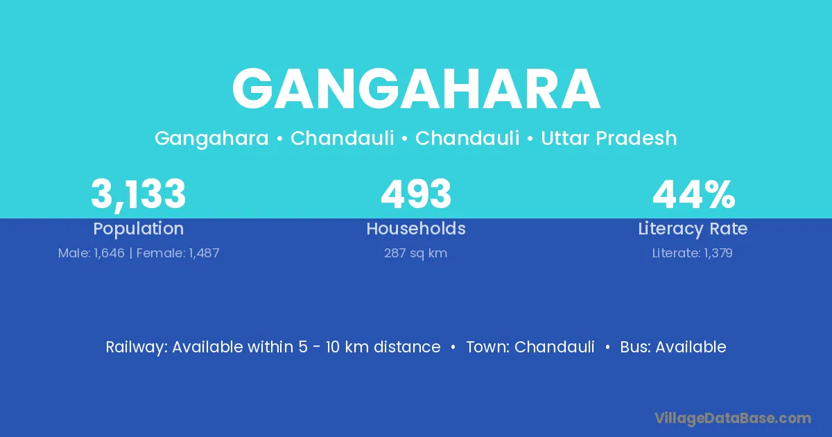 The literacy rate of Gangahara village is 61.74%. Male literacy stands at 71.76% and female literacy at 50.95%.
