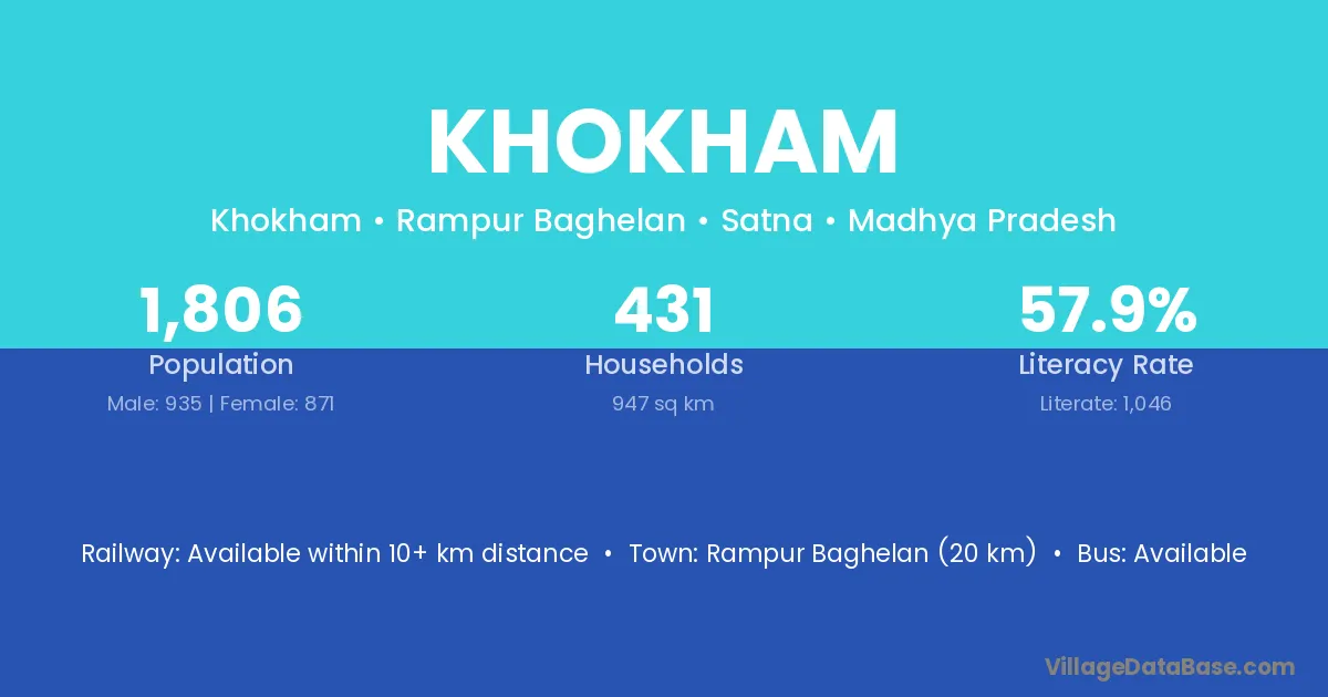 Rewa (11 km) is the nearest town to Khokham village for major economic activities and is located approximately 11 km away.