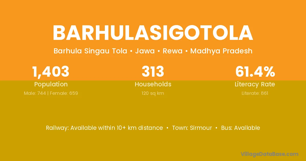 Barhulasigotola village has a total population of 1,403 people, of which 744 are males and 659 are females.