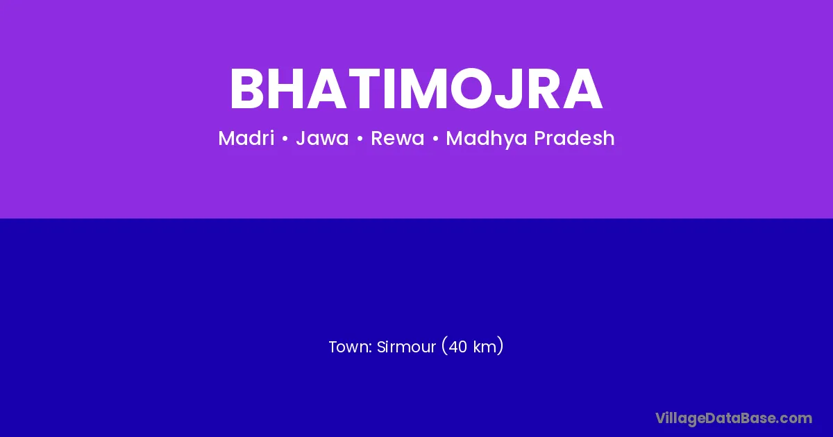 Sirmour (40 km) is the nearest town to Bhatimojra village for major economic activities and is located approximately 40 km away.
