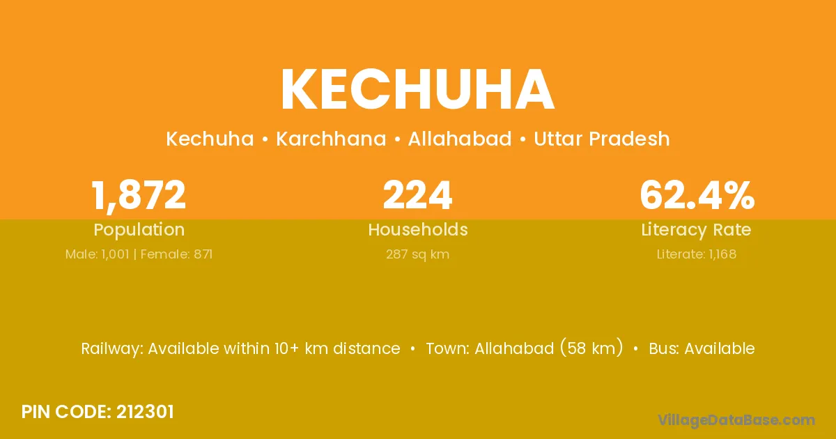 The literacy rate of Kechuha village is 50.63%. Male literacy stands at 60.41% and female literacy at 39.82%.