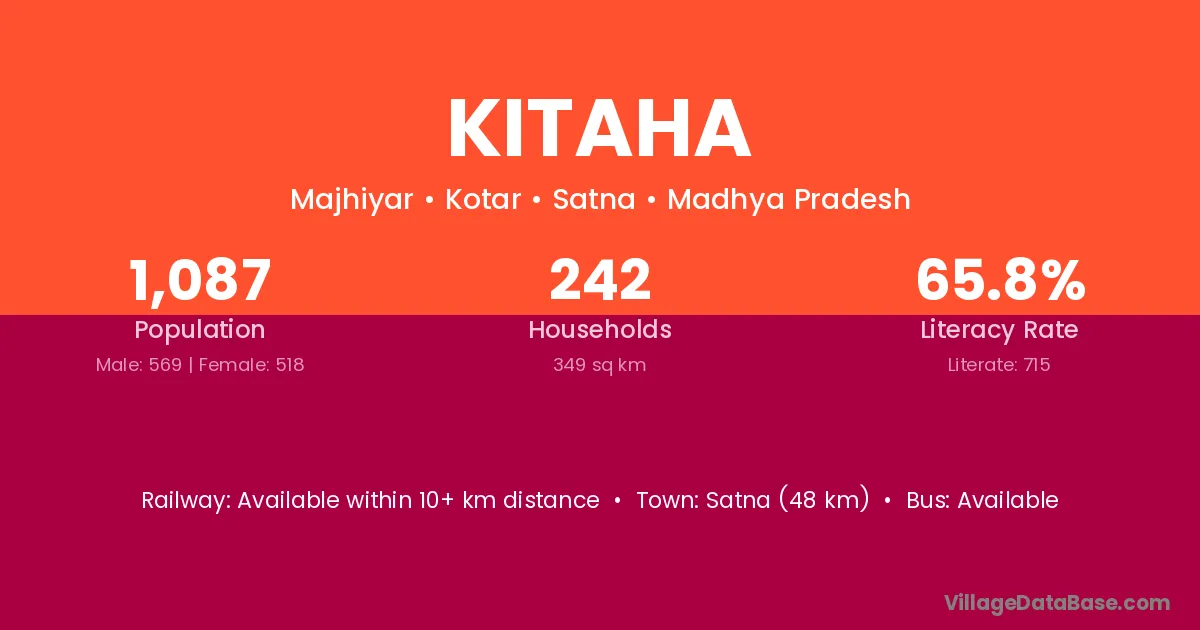 Kitaha village has a total population of 122 people, of which 65 are males and 57 are females.