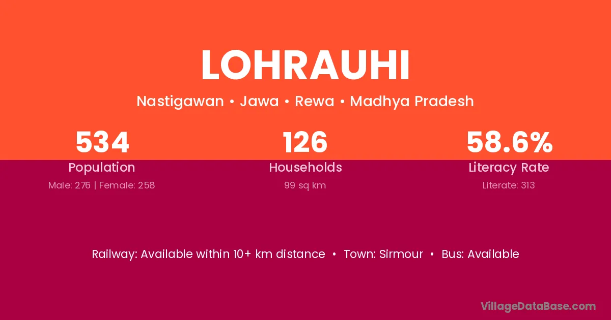 Lohrauhi village has a total population of 534 people, of which 276 are males and 258 are females.