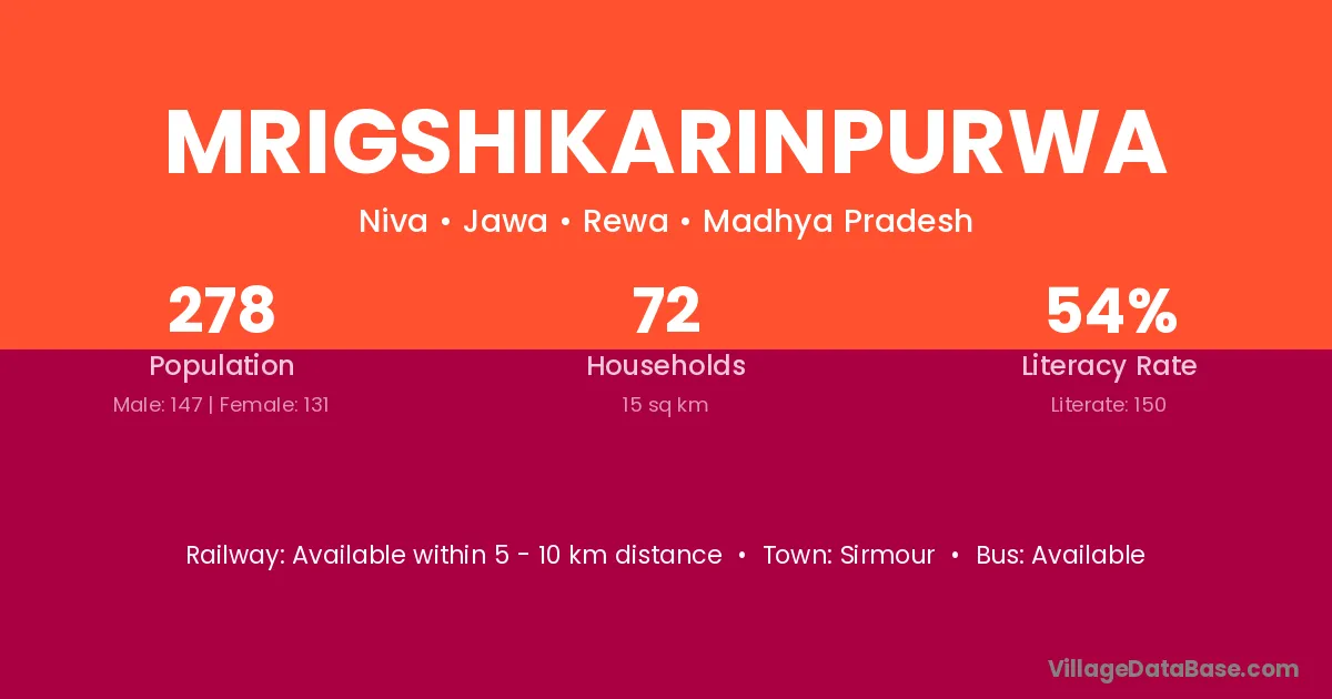 Mrigshikarinpurwa village has a total population of 278 people, of which 147 are males and 131 are females.