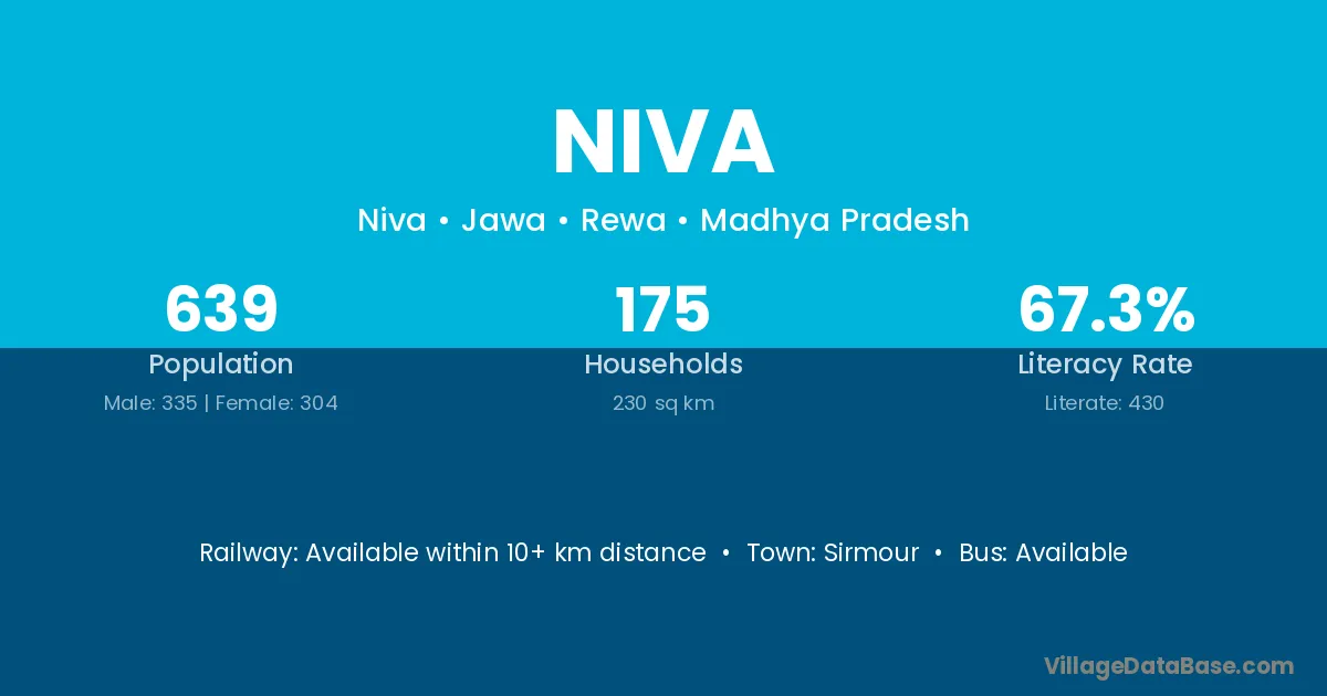 Niva village has a total population of 639 people, of which 335 are males and 304 are females.