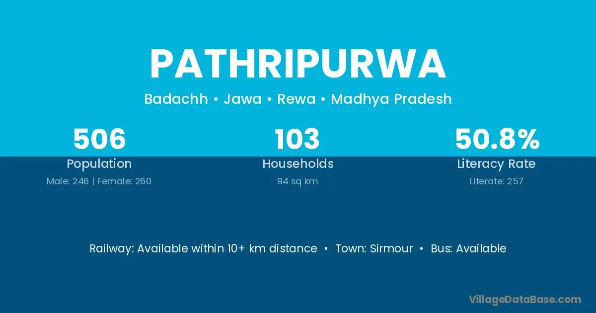 Pathripurwa village has a total population of 506 people, of which 246 are males and 260 are females.