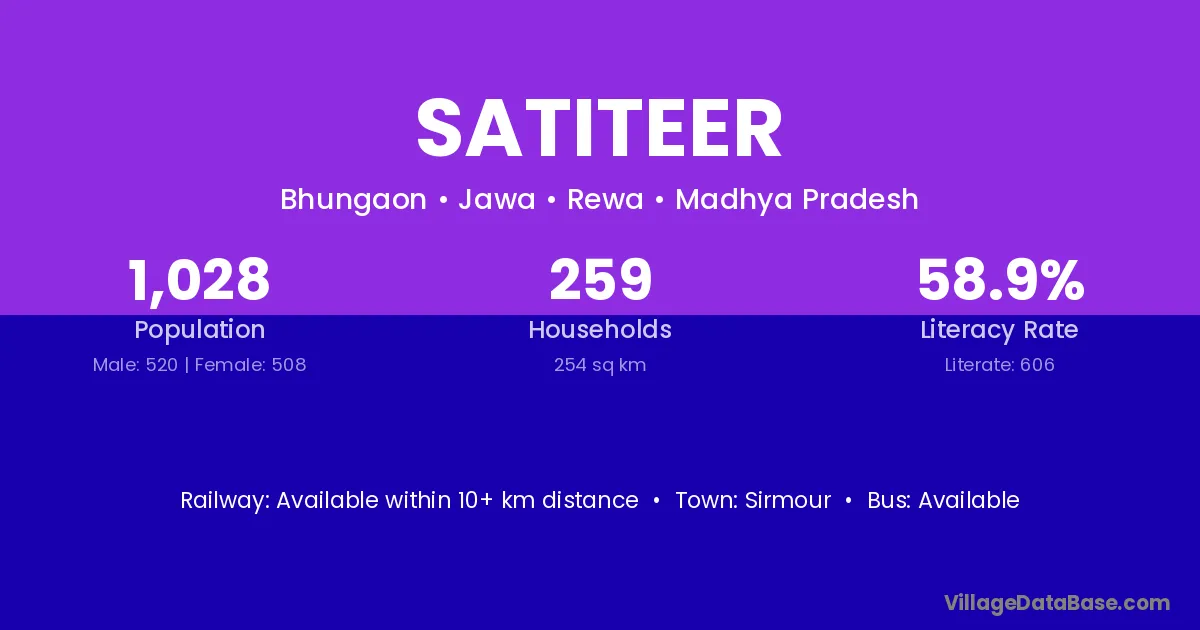 Satiteer village has a total population of 1,028 people, of which 520 are males and 508 are females.