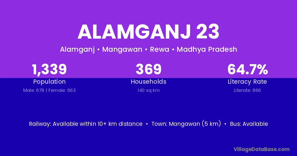 Alamganj 23 village has a total population of 1,339 people, of which 676 are males and 663 are females.