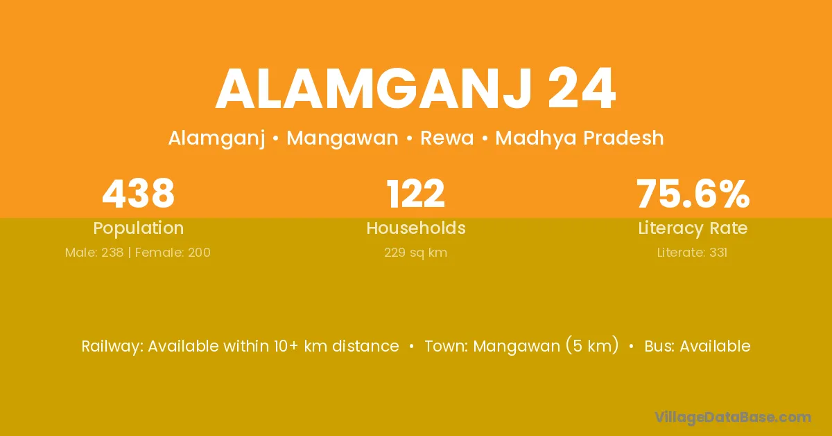 Alamganj 24 village has a total population of 438 people, of which 238 are males and 200 are females.