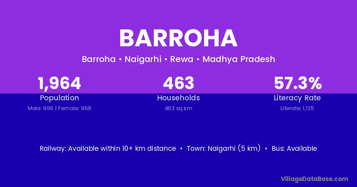 Mangawan (10 km) is the nearest town to Barroha village for major economic activities and is located approximately 10 km away.